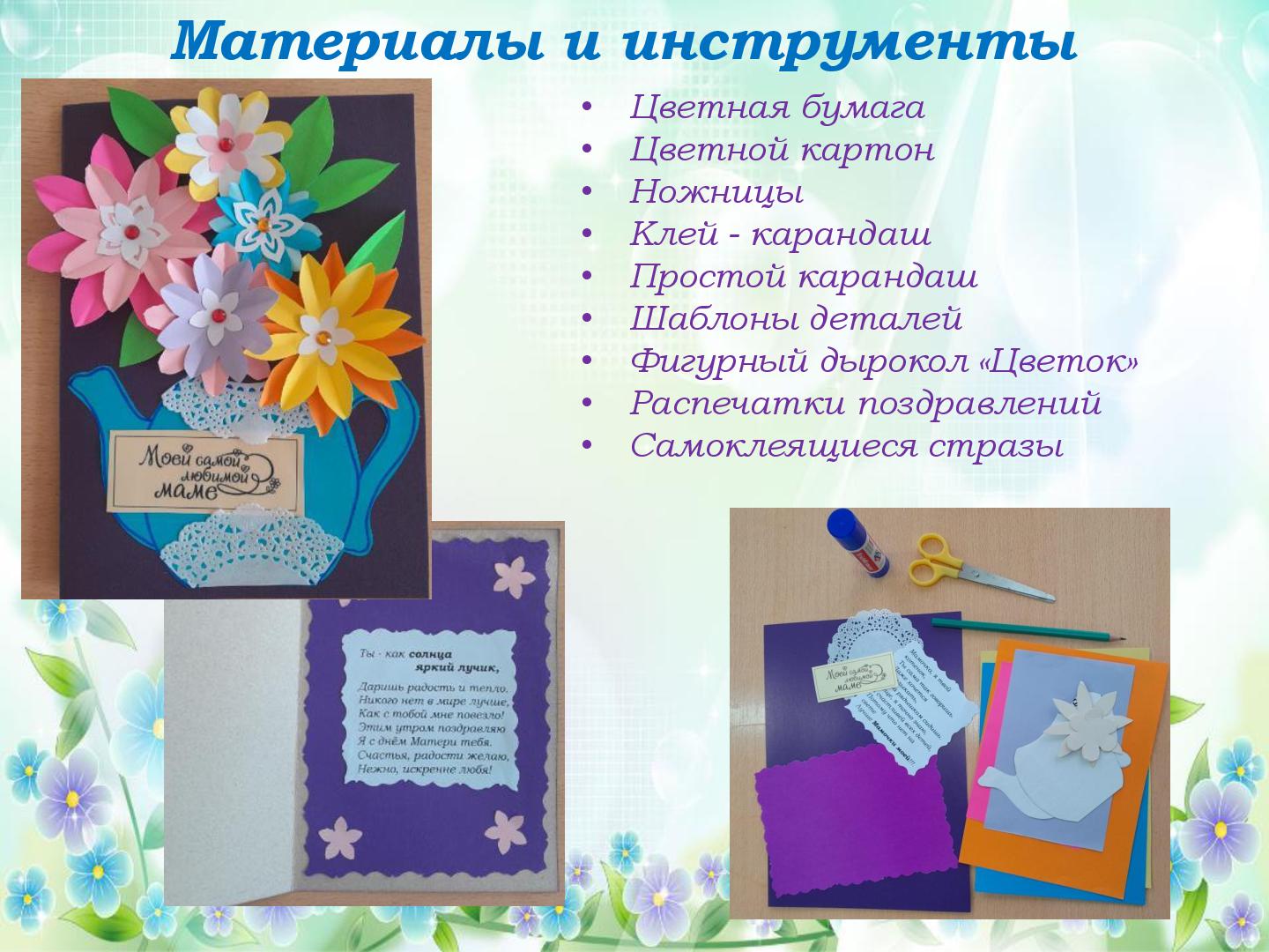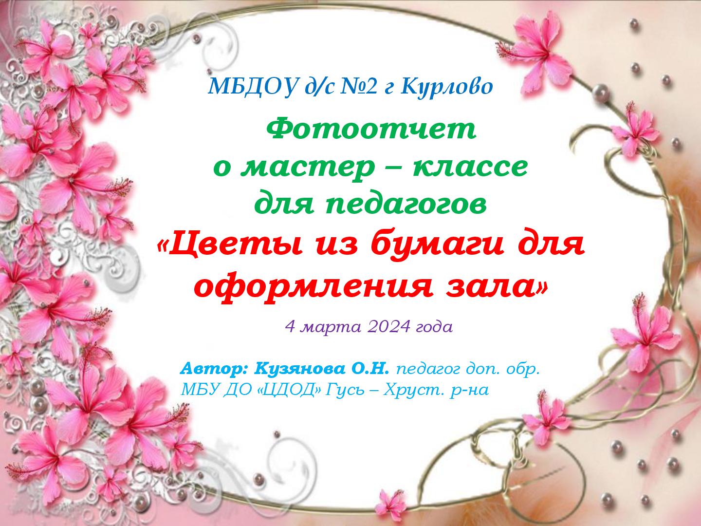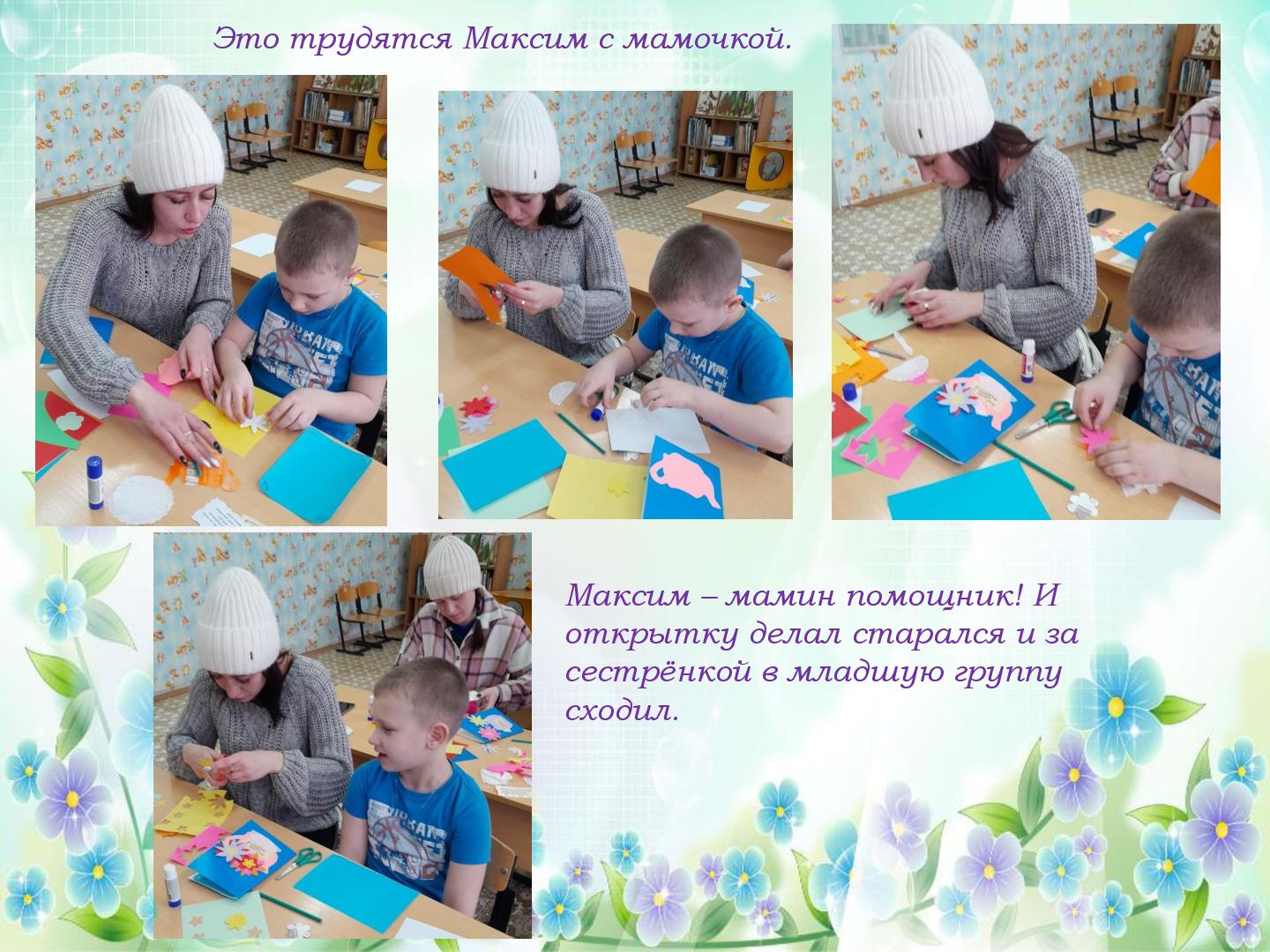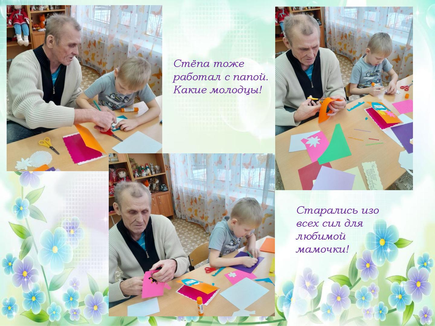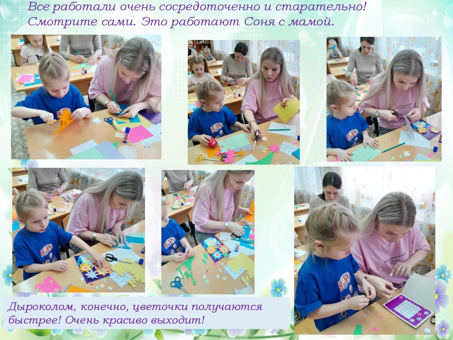 В преддверии Международного женского дня 8 марта в нашем саду прошли подготовительные работы к праздничным мероприятиям. Трудились все, и дети и педагоги. В старшей группе «Гномики» прошел мастер-класс по изготовлению поздравительной открытки для мамочки, бабушки, сестренки. Провела мастер-класс педагог ДО Кузянова Ольга Николаевна. Ну, а что же педагоги? Самое лучшее оформление для музыкального зала, сделанное своими руками. Вот и мы, воспитатели, постарались и сделали яркие, нежные, красивые цветы! К празднику мы готовы! С наступающим 8 марта!