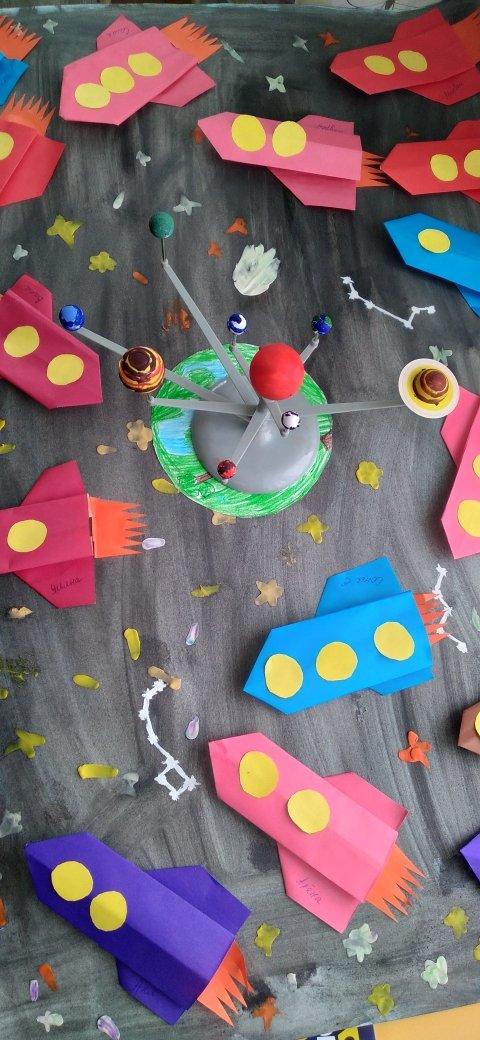 В преддверии Дня Космонавтики в нашем детском саду прошла тематическая неделя, посвящённая космосу, которая оказалась насыщенной и плодотворной. Педагоги всех групп запланировали и провели различные мероприятия. Детей увлекли беседы на темы: "Космос - это интересно", "Планеты солнечной системы».