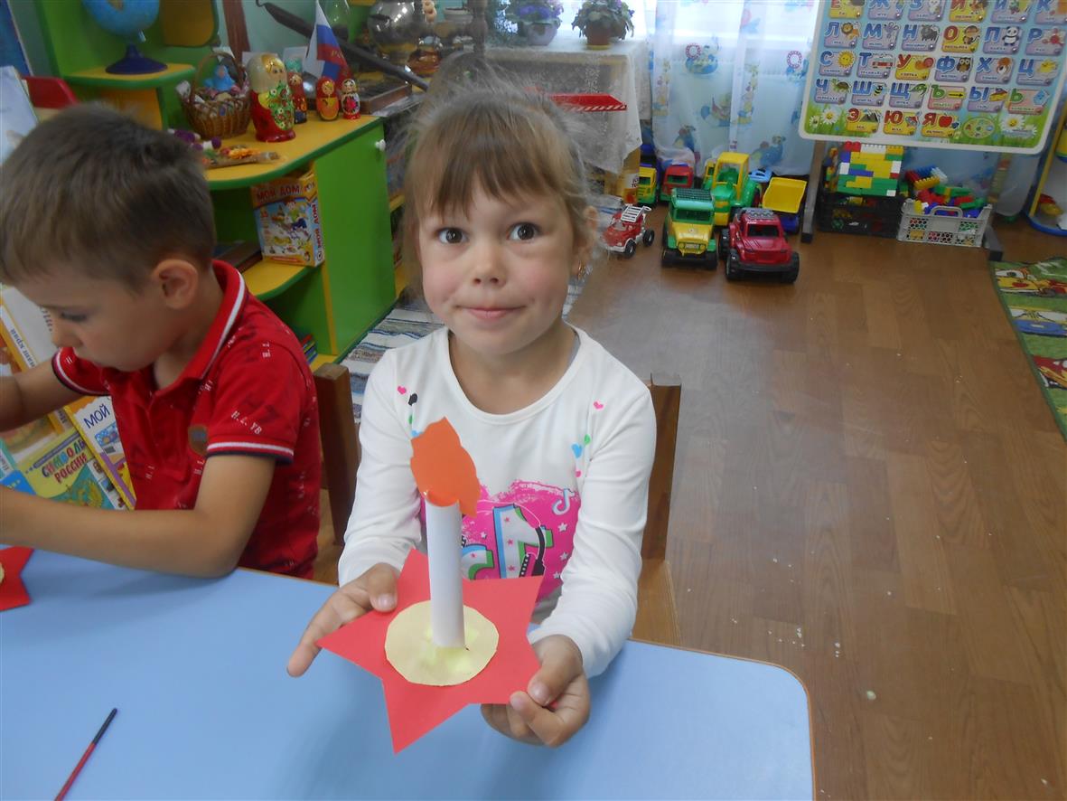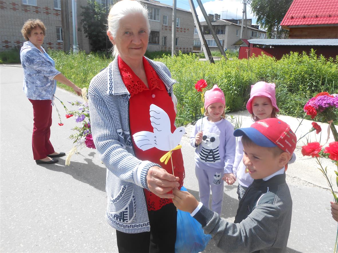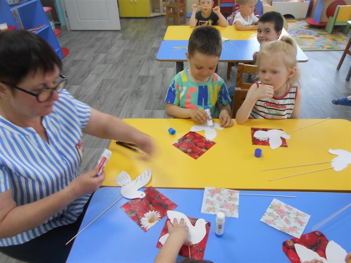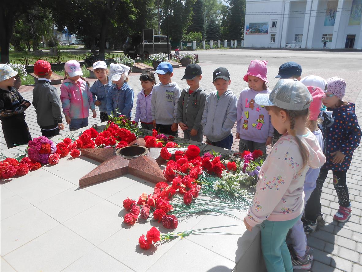 Так же в преддверии 22 июня в детском саду прошло познавательное мероприятие «Мы помним». Дети посмотрели видеофильм «Долгая дорога, длинною в 4 года», отрывки из художественного фильма «Солдатик», про маленького героя, мальчика Сережу, побеседовали. Воспитанники группы «Мишутки» изготовили из бумаги «Свечу Памяти», а детишки группы «Капитошки», совместно с воспитателем изготовили «Голубя Мира». Затем ребята совершили экскурсию к вечному огню и возложили цветы у памятника Неизвестного солдата, установленного в честь воинов, ушедших на фронт и погибших в боях за Родину. А по дороге мы всем дарили нашего «Голубя Мира»