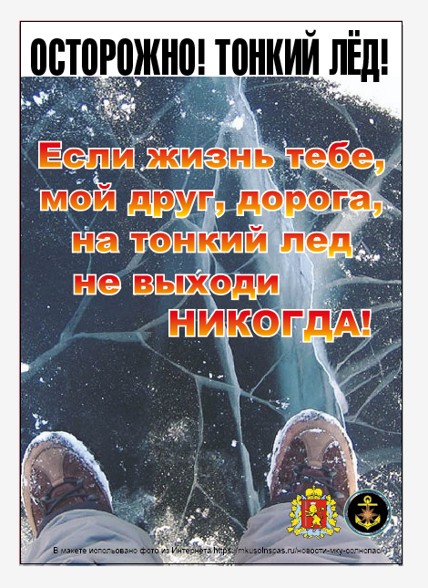 - убедительная просьба родителям: НЕ ДОПУСКАЙТЕ ДЕТЕЙ НА ЛЕД ВОДОЕМОВ (на рыбалку, катание на лыжах и коньках) БЕЗ ПРИСМОТРА;