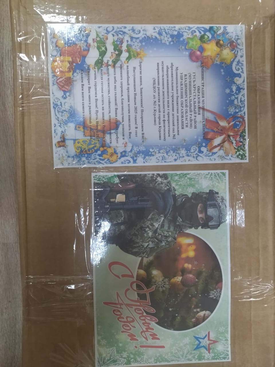 показать единство граждан. Сотрудниками и родителями воспитанников сада были собраны продукты длительного хранения (крупы, макароны, консервы, чай, сахарный песок и сладости) Воспитанники старшей группы «Мишутка» сделали поздравительные открытки нашим воинам и вместе с воспитателем написали слова пожеланий.