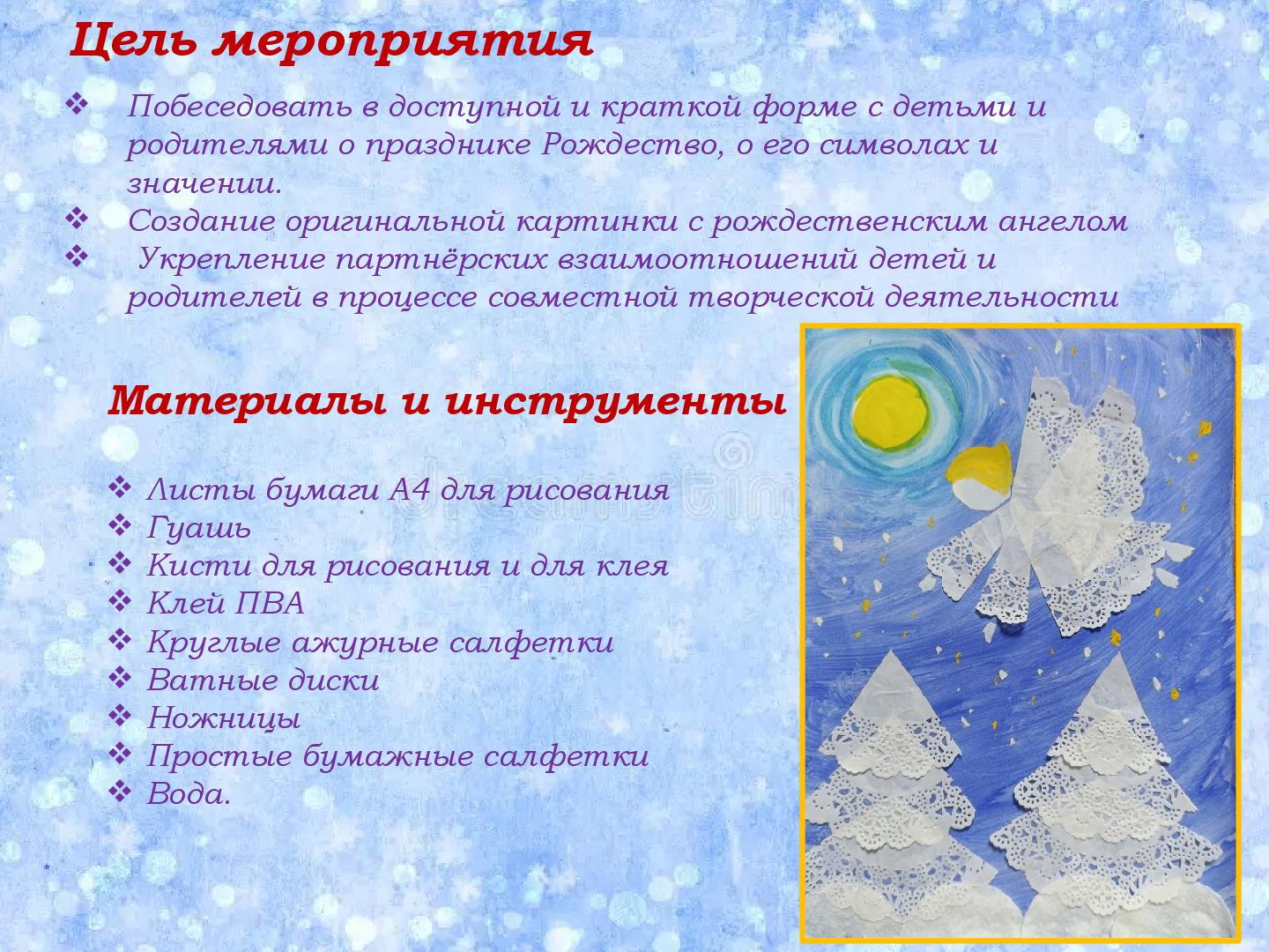 Мастер-класс с родителями средней группы «Рождественский ангел»