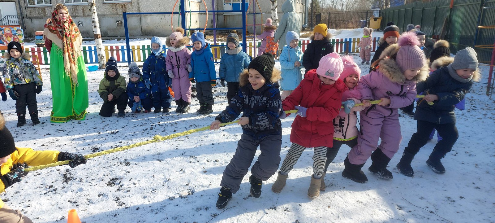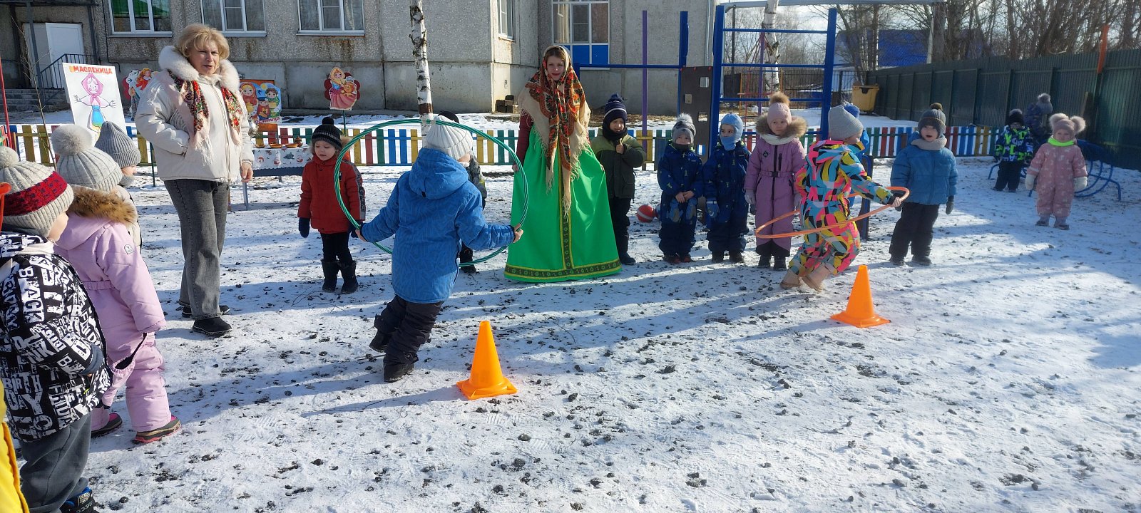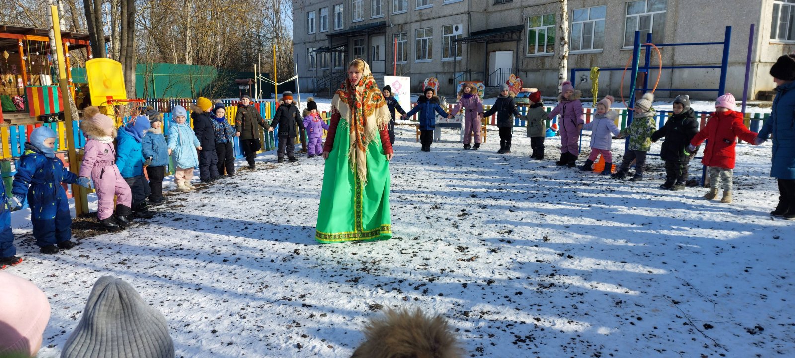 Радостные события, такие как народные праздники, гулянья, всегда украшали нашу жизнь. Масленицу ждут не только взрослые, но и, с большим нетерпением, дети. Масленица – это один из самых веселых народных мероприятий, которое завершает зимнюю череду праздников и предвещает о начале весны!Ежегодное проведение «Масленицы» в нашем детском саду стало традиционным и любимым праздником для детей. Вот и в этом году все наши воспитанники, кроме самых маленьких,стали участниками проводов зимы на улице. Всю неделю дети готовились к этому событию и ждали его с нетерпением. Из бесед они узнали, как раньше на Руси праздновали Масленицу, разучивали русские народные игры, песни, заклички. И вот наконец-то настал этот день! Сегодня мы провожали зиму и встречали Весну. Детишки водили хороводы, много играли, соревновались, танцевали и конечно ели блины! Праздник получился веселый, задорный, вкусный!