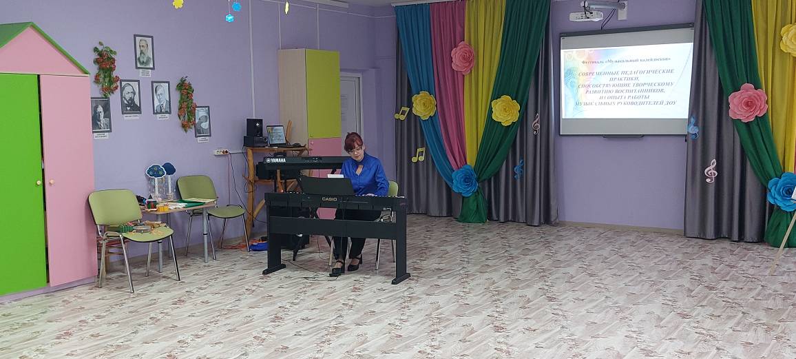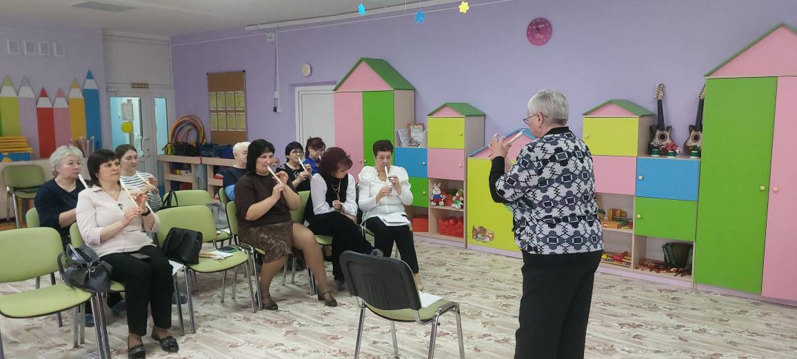 Вчера, 12 марта, на базе нашего детского сада прошел районный семинар для музыкальных руководителей Гусь-Хрустального района на тему «Современные педагогические практики, способствующие творческому развитию воспитанников, из опыта работы музыкальных руководителей ДОУ». Гостей приветствовали воспитанники старшей группы «Мишутка», они исполнили песню «Поздравляем» и танец с обручами «Родные просторы». Далее своим опытом работы по формированию певческих навыков у детей поделились Добрынина Е.М. музыкальный руководитель МБДОУ д/с№ 3 г.Курлово. Антонова В.Н., музыкальный руоводитель ДОУ № 1 г.Курлово,рассказала об использовании музыкальных шумовых инструментов. Мастер-класс по обучению игры на свирели провела Круглова Л.Н. музыкальный руководитель МБДОУ д/с № 8 п.Золотково. С презентацией « Развитие музыкального восприятия у детей дошкольного возраста в процессе слушания классической музыки» выступила музыкальный руководитель из Великодворской СОШ, Савинова М.А. Ну и конечно же выступила наш музыкальный руководитель, Хромова Ю.Н. Она поделилась новым направлением своей деятельности «Развитие предпосылок ценностно-смыслового восприятия музыкальных произведений у детей старшего дошкольного возраста посредством использования репродукций картин русских художников». Участники семинара высоко оценили данное методическое мероприятие, практическую значимость представленного опыта работы коллег.