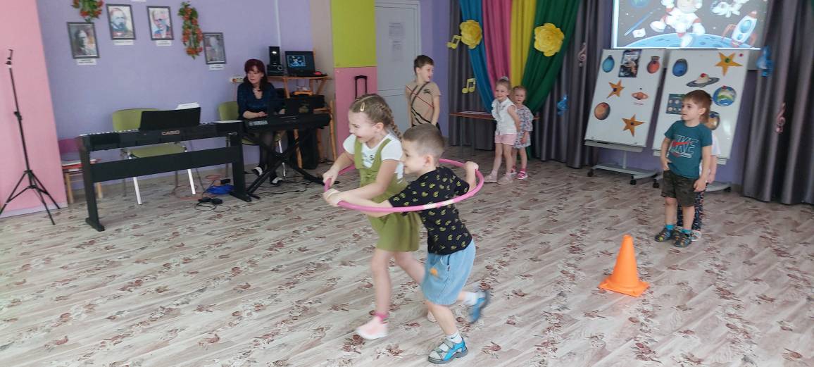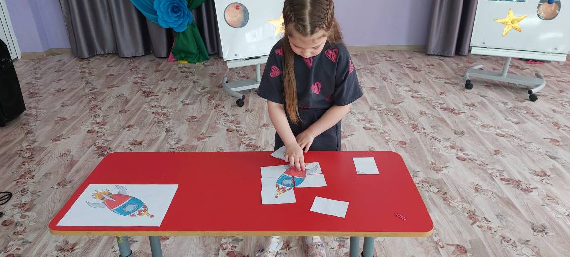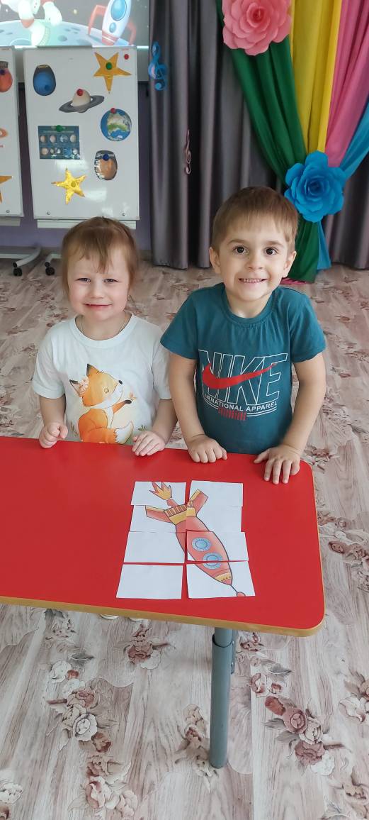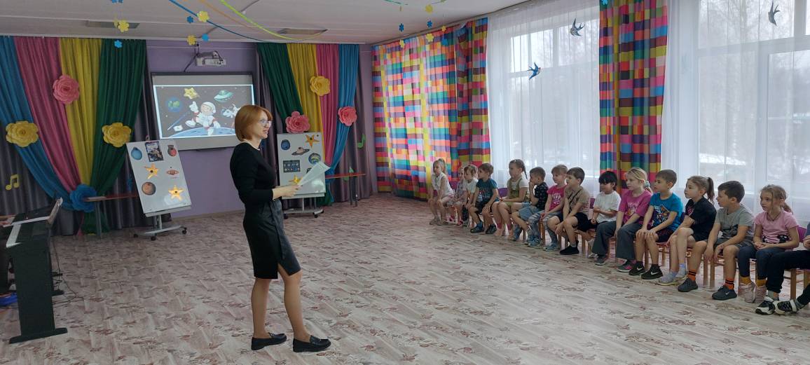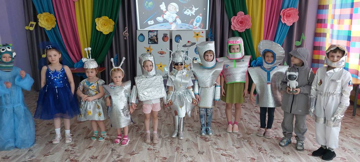 После познавательной беседы, дети разгадывали загадки на космическую тему, с удовольствием провели физическую тренировку, которая необходима для будущих космонавтов. А также потрудились и интеллектуально – собирали пазлы Ракета и играли в игру «Правильный отсчет». Но самым приятным, неожиданным и интересным был парад « Космических пришельцев». Воспитанники продемонстрировали инопланетные костюмы во главе с « Космической королевой». В заключении мероприятия детишки посмотрели мультфильм «Лунтик его друзья». Все получили ряд положительных эмоций, заряд бодрости и хорошего настроения. Также к этому знаменательному событию в детском саду была оформлена выставка детских рисунков «Космические дали»