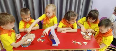 4 ноября в России отмечался праздник - День народного единства. Это праздник, который призывает людей не только вспомнить важнейшие исторические события, но и напомнить гражданам многонациональной страны важность сплочения. Ведь только вместе, двигаясь в одном направлении, можно справиться с трудностями и преодолеть препятствия, а особенно в наше время. С целью формирования у детей представлений об истории России, ее героическом прошлом, а также с целью расширения представлений детей о народах, населяющих Россию, воспитания чувства патриотизма, в саду прошла интеллектуальная познавательная викторина «Мы Россияне». Соревновались две команды: «Орлята России» и «Оранжевые галстуки». Дошкольники узнали о том, как велика, красива и богата ресурсами наша страна. Узнали об историческом прошлом России, закрепили знания о государственных символах, отгадывали загадки, собирали пазлы, называли города России а также посмотрели познавательный фильм «День народного единства». Борьба между командами была упорной и энергичной. И все таки победила ДРУЖБА.